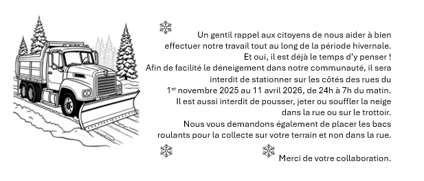 Nouvelles Fête des enfants - Noël 2025Déneigement 2025-2026